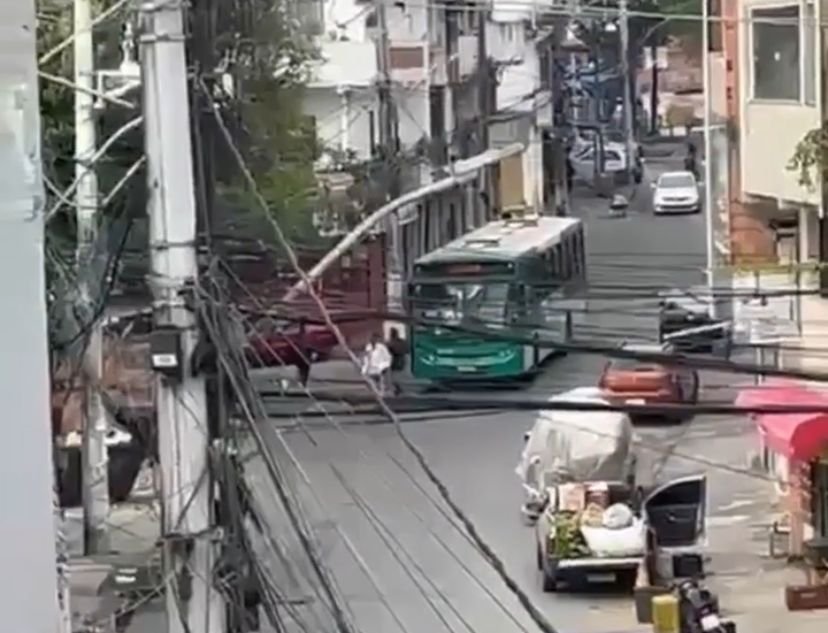 Passageiros que estavam dentro de um ônibus que seguia para Estação Pirajá, viveram momentos de terror na manhã desta sexta(25), quando o veículo passava pela Rua Direta do Jardim Santo Inácio. Um grupo de homens armados pararam o o buzu e iniciaram os roubos. Pessoas que estavam dentro do ônibus saíram correndo no meio da rua e em seguida, um policial à paisana que estava indo para o trabalho troca tiros com os brandidos. O grupo é flagrado fugindo. Toda ação dos criminosos foi registrada em celular por uma pessoa.