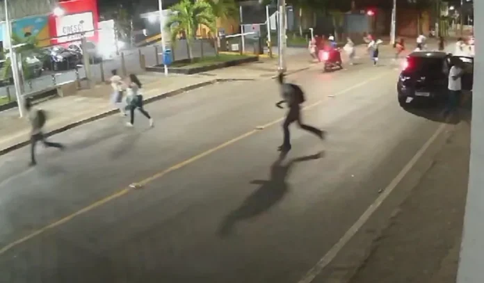 Na noite desta terça-feira (27), um arrastão assustou trabalhadores e estudantes que aguardavam no ponto de ônibus em frente ao Shopping Cajazeiras. Testemunhas relataram que os criminosos chegaram em um carro modelo Fiat Uno. Apenas um bandido desceu do veículo e roubou os pertences das pessoas que estavam no local, forçando-as a correr para escapar.
