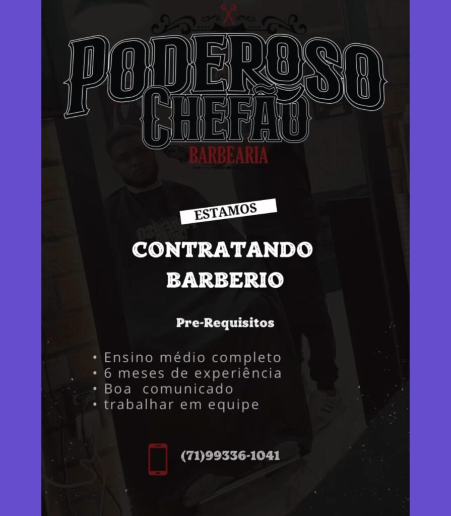 A @poderosocbarber, localizada na Estrada do Coqueiro Grande, está com vaga aberta para barbeiro.