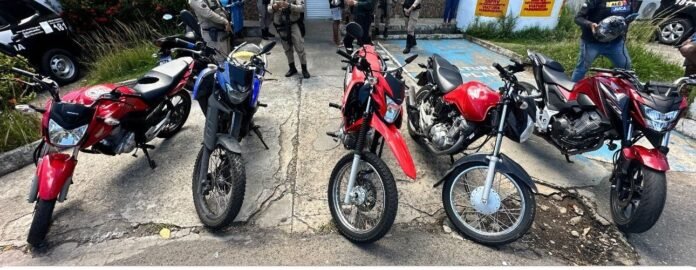 Segundo os policiais, uma pessoa que teve o veículo roubado informou que conseguiu rastrear a moto até a região. As equipes foram até o local e, além da moto da vítima, encontraram outras quatro motocicletas com registros de roubo, além de ferramentas e materiais usados para desmontar e adulterar os veículos.