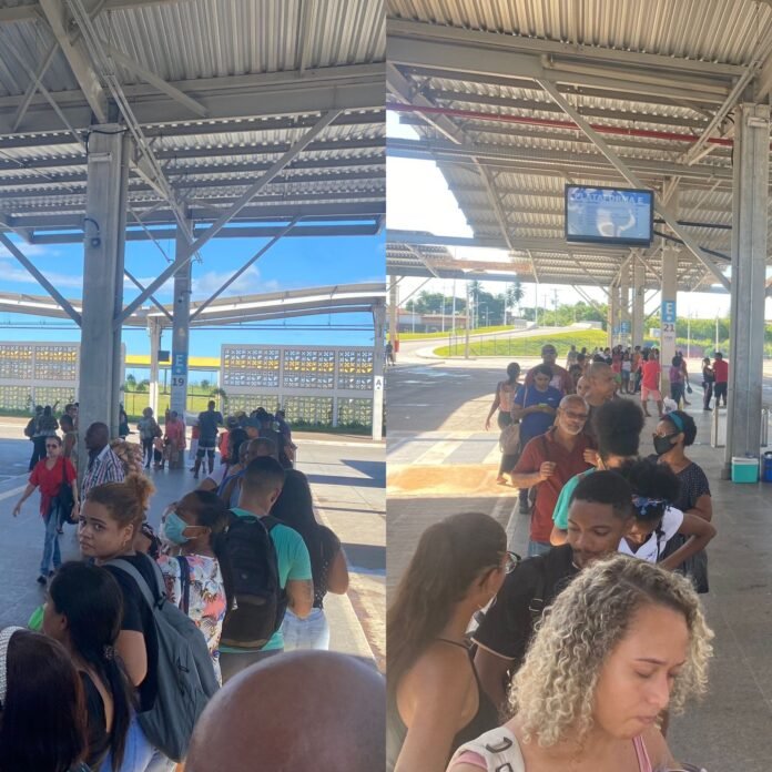 Nos horários de entre-pico, as filas quilométricas, chamam a atenção de quem passa pelo terminal.