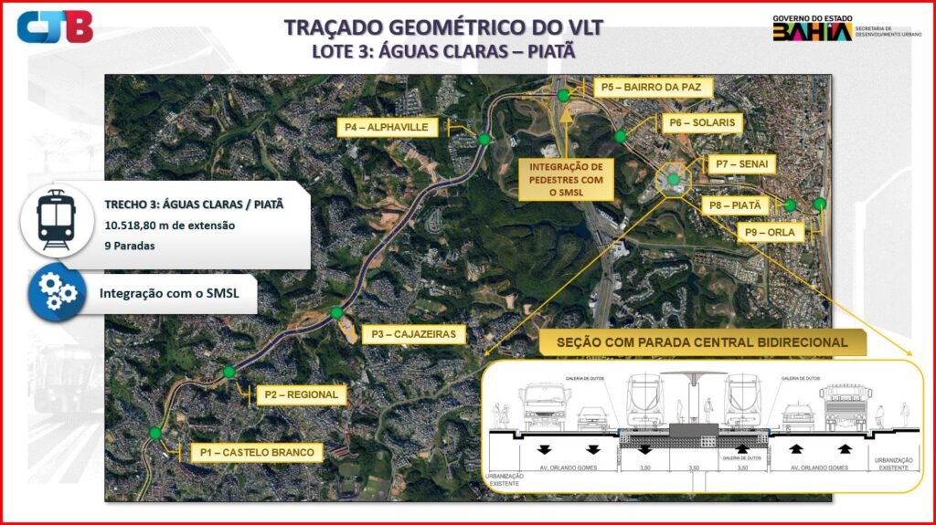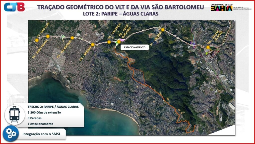 As obras do Veículo Leve sobre Trilhos (VLT) em Salvador começaram e já têm 5% de avanço. O novo transporte vai ligar Paripe a Piatã e terá 17 estações ao longo da Estrada do Derba e Avenida 29 de Março — passando direto por Águas Claras, área que atende parte de Cajazeiras.