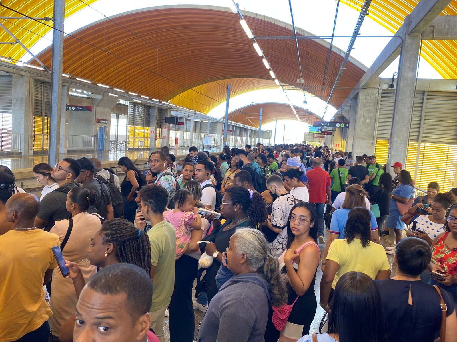 Na Estação Águas Claras, o tempo de espera passa de dez minutos, resultando na lotação da plataforma de embarque e trens. A CCR Metrô Bahia informou que equipes de manutenção atuam para tentar solucionar o problema.