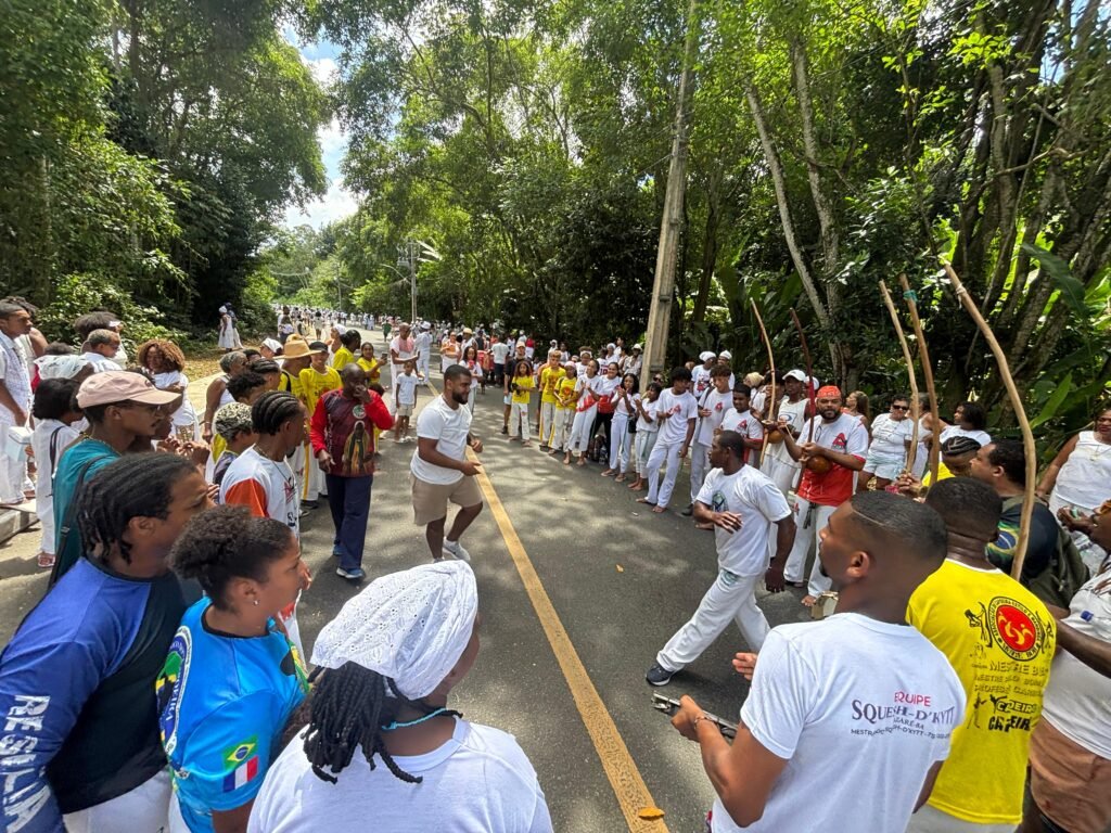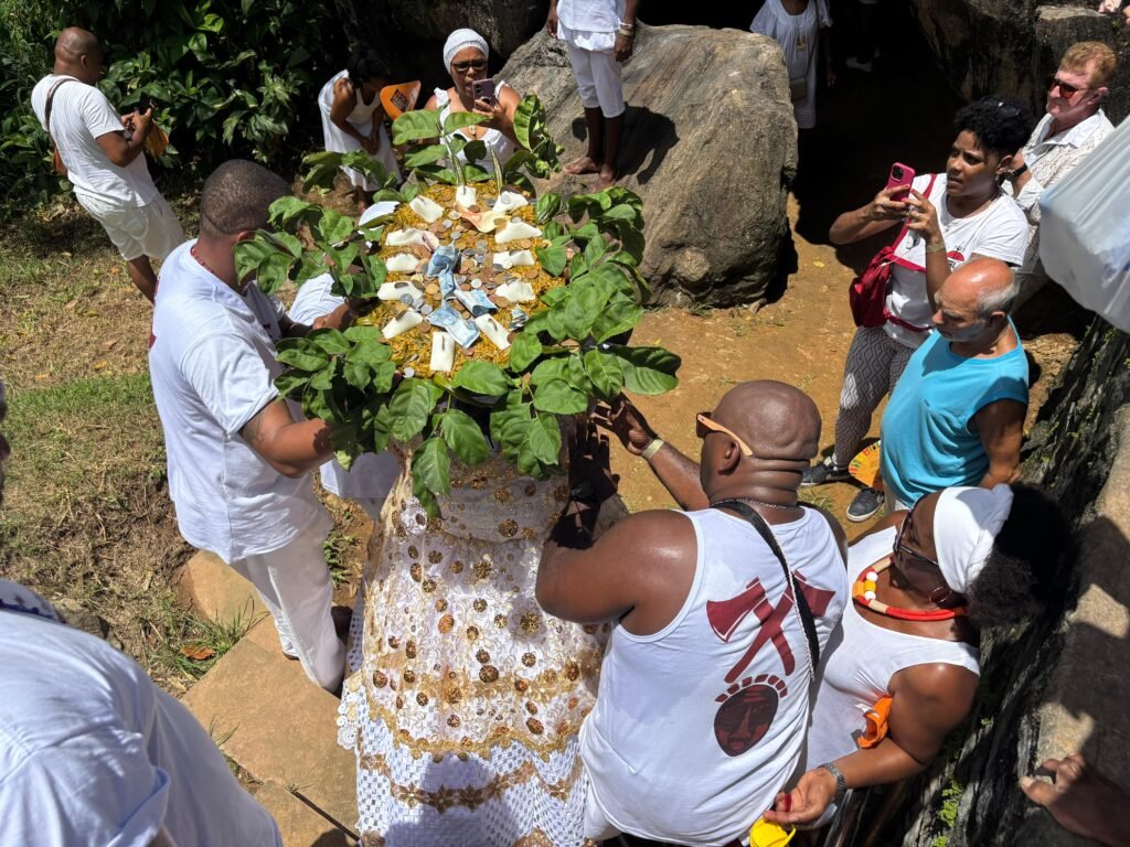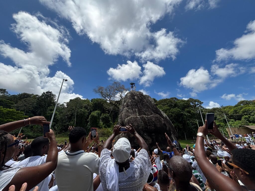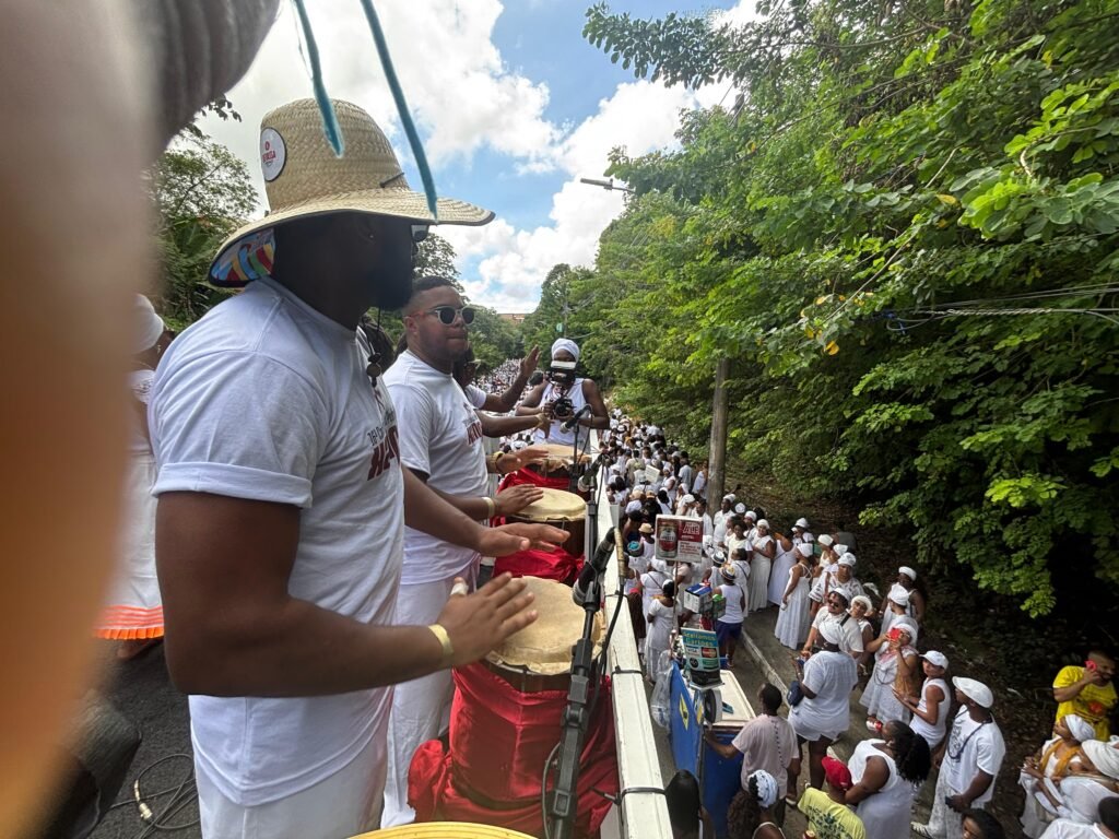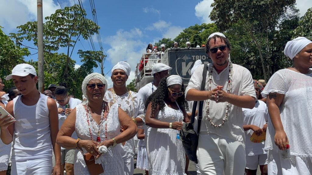 Fé, ancestralidade e resistência marcaram mais um ano da Caminhada da Pedra de Xangô. Vestidos de branco, fiéis percorreram dois quilômetros em homenagem ao patrono da justiça, reafirmando a luta pela preservação desse espaço sagrado. O cortejo terminou no monumento de oito metros de altura, onde oferendas foram entregues e pedidos de bênçãos feitos. No fim, o samba de terreiro tomou conta do Parque Pedra de Xangô, encerrando a celebração com muita energia.
