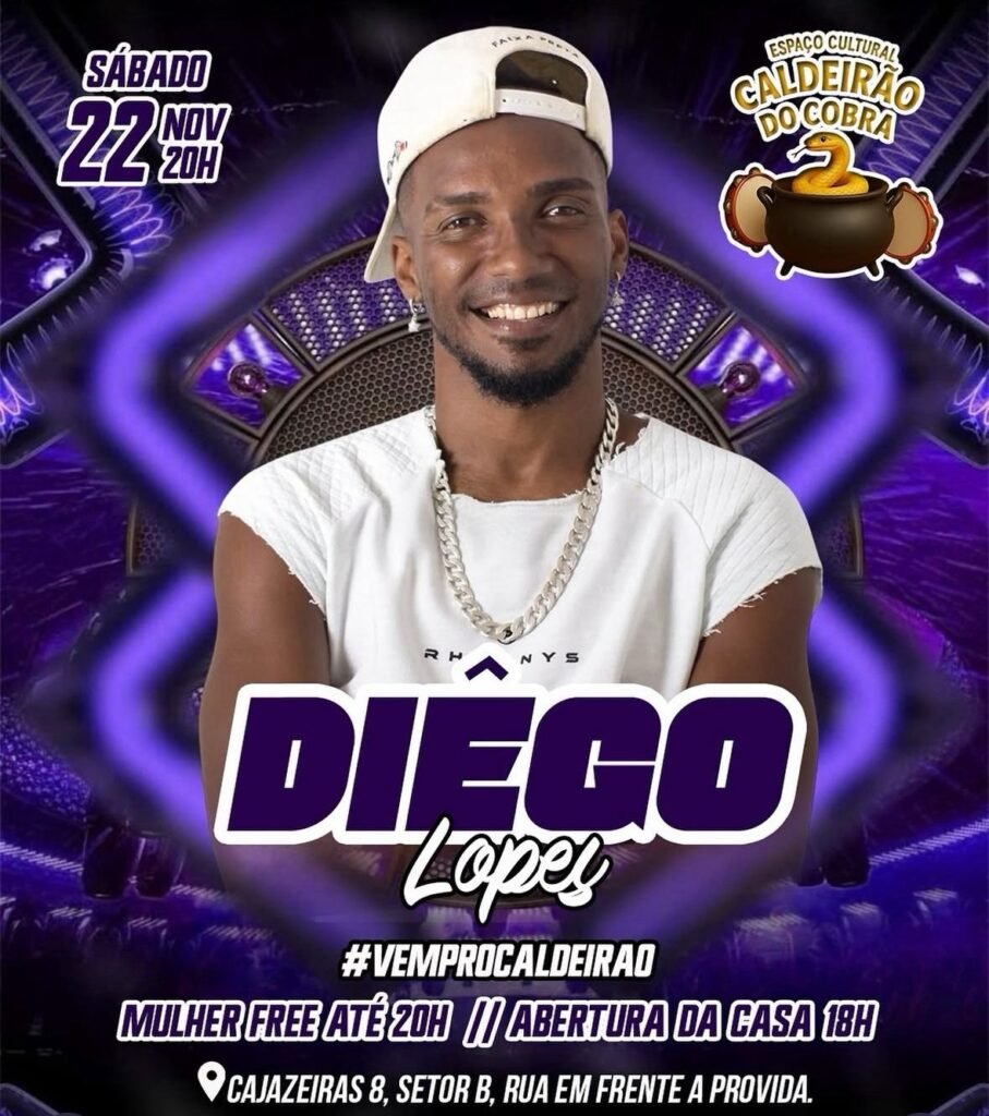 O sábado (22) vai ser de muito pagode no Espaço Cultural Caldeirão do Cobra, no Cajazeiras 8. A casa recebe Diego Lopes, nome conhecido nas festas do bairro, em uma noite que promete lotar o Setor B.