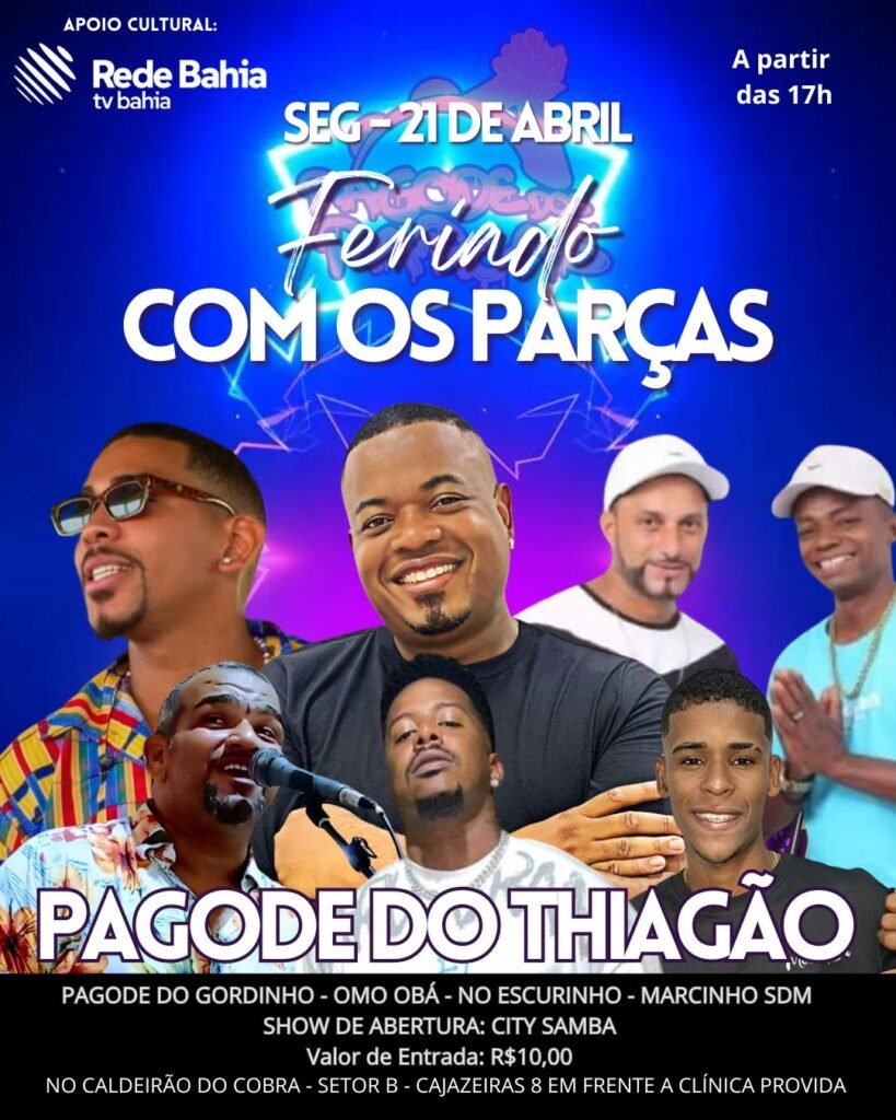 Cajazeiras vai ferver neste feriado de Tiradentes, segunda-feira (21), com o evento “Feriado com os Parças”, que promete reunir os amantes do pagode no Setor B, em Cajazeiras 8.