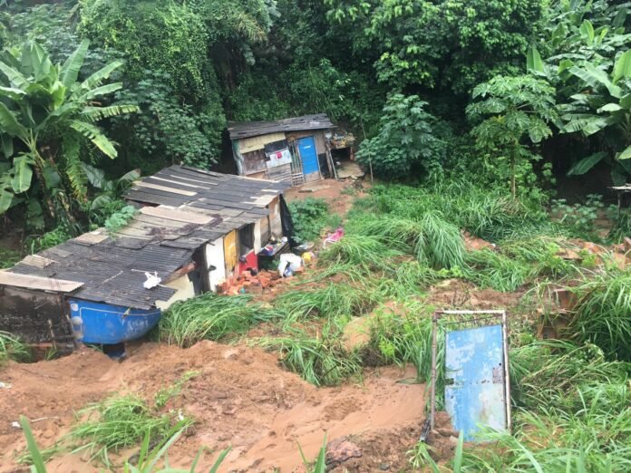Por volta das 12h, desta segunda-feira(8), a terra de uma encosta na Rua F, em Jaguaripe 1, deslizou e arrastou uma casa. Além dessa, outras três casas foram construídas no local atingido e os moradores precisaram pular a janela para não ficar soterrados.