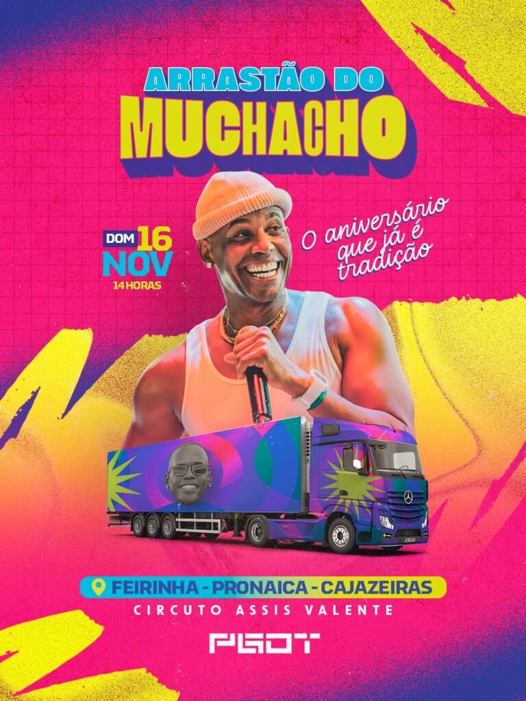 O Arrastão do Muchacho acontece em meio às comemorações dos 25 anos de carreira do Pagod’art, que acaba de lançar o EP “Pagod’art 25 Anos – Vol. 03”, disponível nas plataformas digitais. O projeto conta com participações de Léo Santana e Igor Kannário, reforçando o legado da banda como um dos grandes nomes do pagode baiano.