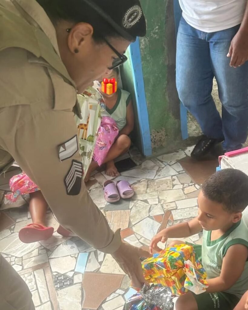 A entrega dos brinquedos foi organizada pela Base Comunitária de Segurança (BCS) do bairro e contou com o apoio dos próprios policiais e de moradores que contribuíram com doações.