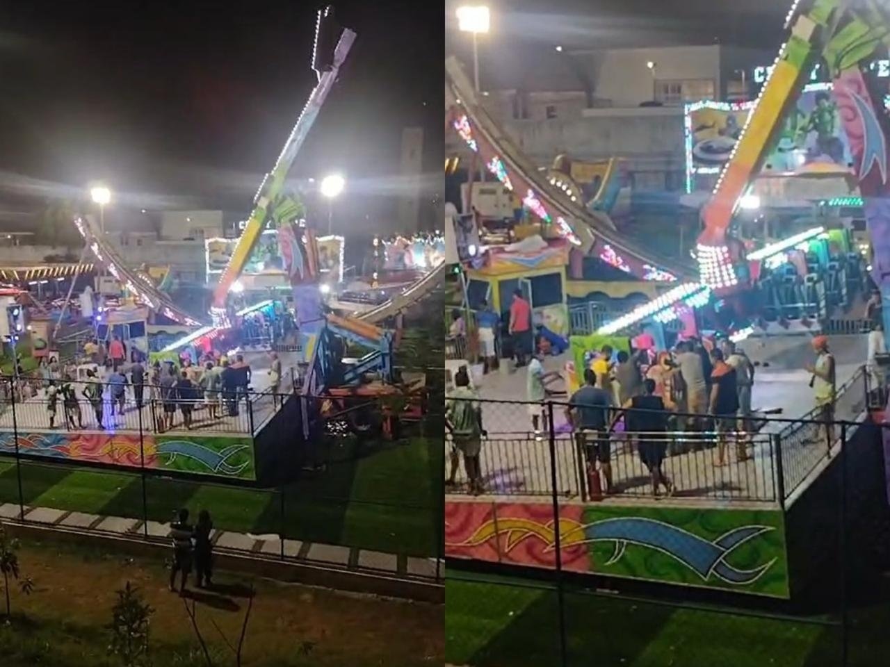 Um dos brinquedos de um parque de diversões instalado no Campo da Pronaica, em Cajazeiras, despencou, na noite desta quinta-feira (15/02).