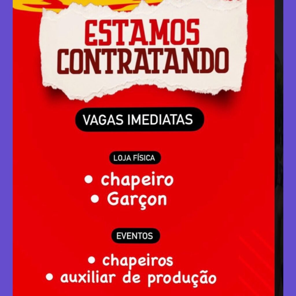 A maior rede de creperia da Região de Cajazeiras abre vagas de emprego para garçom, chapeiro e auxiliar de produção. Os interessados devem entrar em contato com o estabelecimento através do perfil oficial @reidocrepe.frances1 .