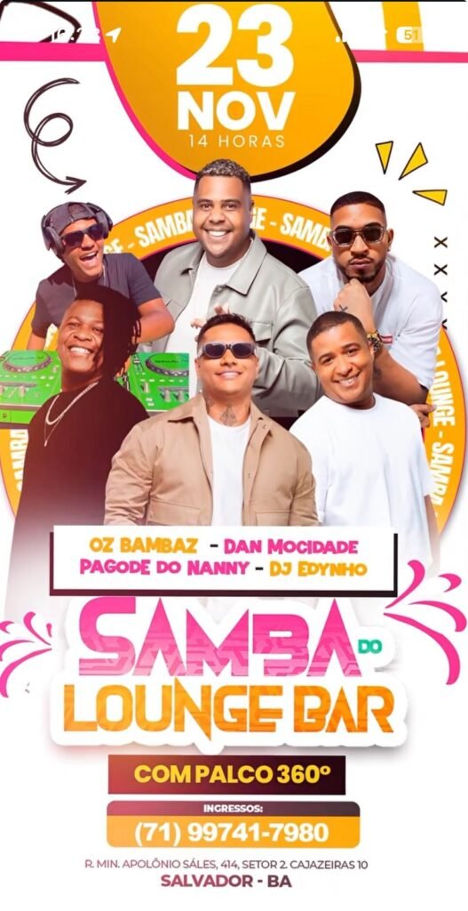 O diferencial da edição é o palco 360°, feito para colocar o público no centro da roda de samba e aproximar ainda mais os artistas de quem está ali para curtir. O bar, localizado na Rua Ministro Apolônio Sales, promete uma tarde de muito pagode e cerveja gelada, fórmula clássica do domingo em Cajazeiras. Ingressos e informações estão disponíveis no número divulgado pela organização