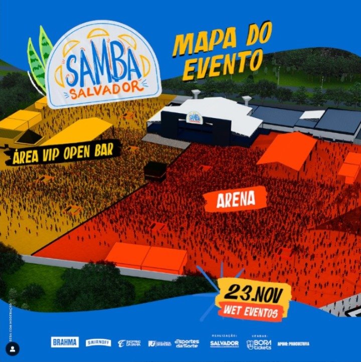 Vendas: Loja do do Bora Tickets, no 2º piso do Shopping da Bahia ou através do site Link: https://vendas.boratickets.com.br/evento/322/samba-salvador