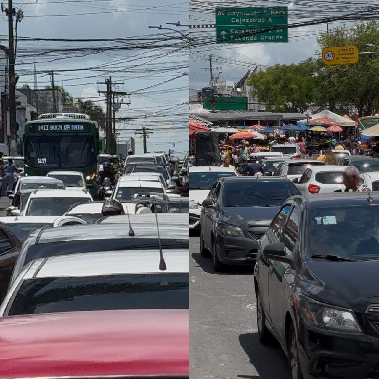 A circulação de veículos fica mais lenta, principalmente nas Estradas da Paciência, Coqueiro Grande e na Avenida Engenheiro Raimundo Carlos Nery. Com lojas e a feira cheias, o fluxo aumenta tanto nas calçadas quanto nas ruas, formando longos congestionamentos.
