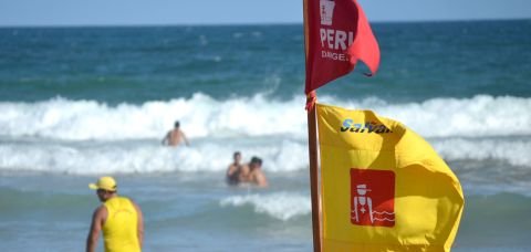• Nunca entre no mar onde tiver bandeira vermelha (alto risco)