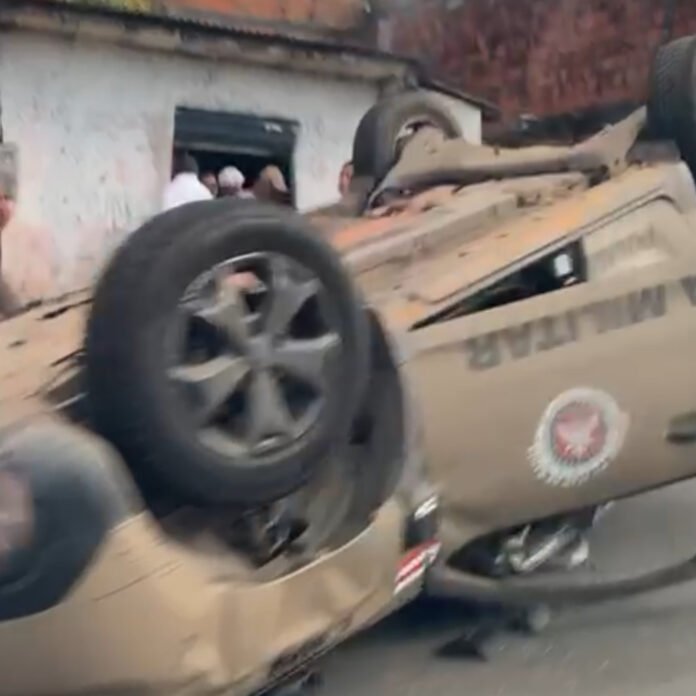 Uma viatura 22º Batalhão da Polícia Militar de Cajazeiras capotou na tarde desta terça(30), na Rua Vereador Zezeu Ribeiro, próximo a Independência, na Fazenda Grande 1.