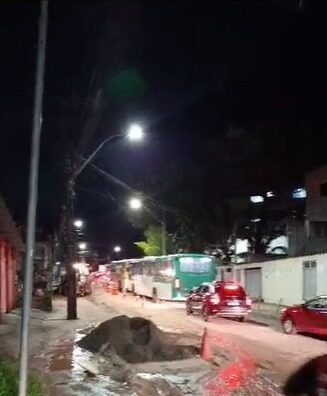 Trânsito complicado na Rua Juscelino kubitschek e Avenida Dois de Julho, no bairro de Cajazeiras 11, na noite desta terça-feira(19), por causa de um serviço que está sendo feito pela Embasa, iniciado ontem(18). Uma faixa no sentido BR precisou ser interditada e com isso, a pista no sentido Cajazeiras 10, funciona no sistema siga e pare. Com isso, o morador vai precisar de paciência na volta pra casa.