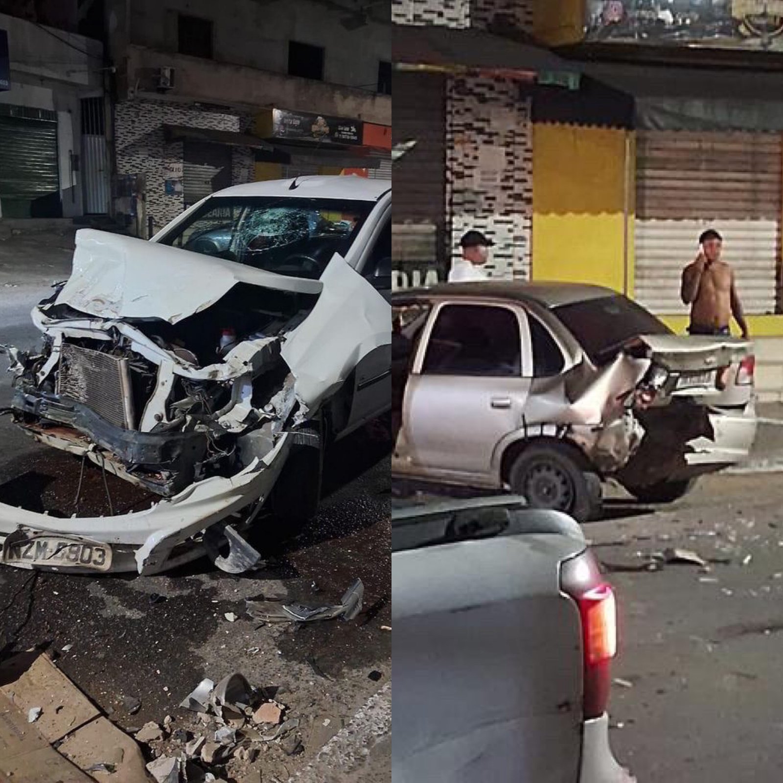 O motorista de um carro perdeu o controle da direção, bateu em outro veículo e subiu a calçada, na Avenida Engenheiro Raimundo Carlos Nery, em Cajazeiras, na madrugada desta terça(25).