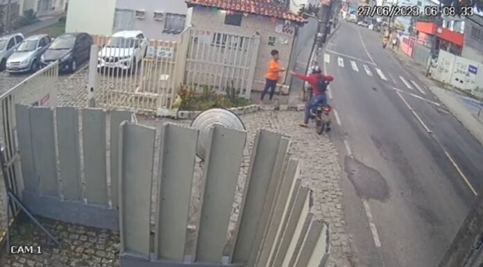 Câmera de segurança registra o roubo na manhã desta terça-feira(27)