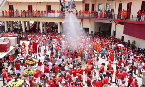 O cortejo segue pelo Centro Histórico até o 1º Grupamento de Bombeiros Militar, na Barroquinha. A corporação é devota de Santa Bárbara, considerada protetora dos bombeiros. E o ponto alto é sempre o tradicional banho de mangueira, um momento de alegria coletiva que simboliza proteção e renovação.