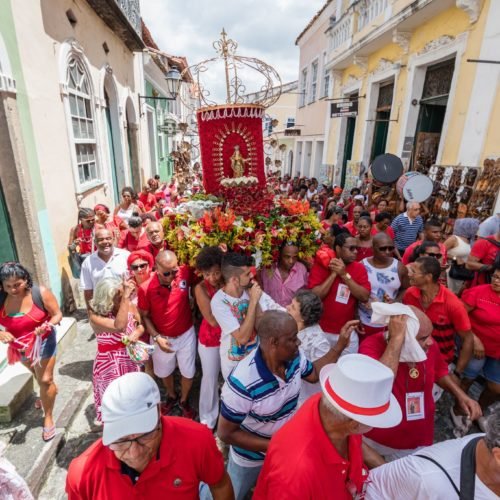 O dia começa cedo, com alvorada e missa na Igreja do Rosário dos Pretos, no Largo do Pelourinho. É dali que sai o cortejo, acompanhado por fiéis vestidos de vermelho, cor tradicional de Iansã/Santa Bárbara. As ladeiras ficam cobertas de pétalas, o cheiro de alfazema toma conta do ar e o som dos atabaques guia o percurso.