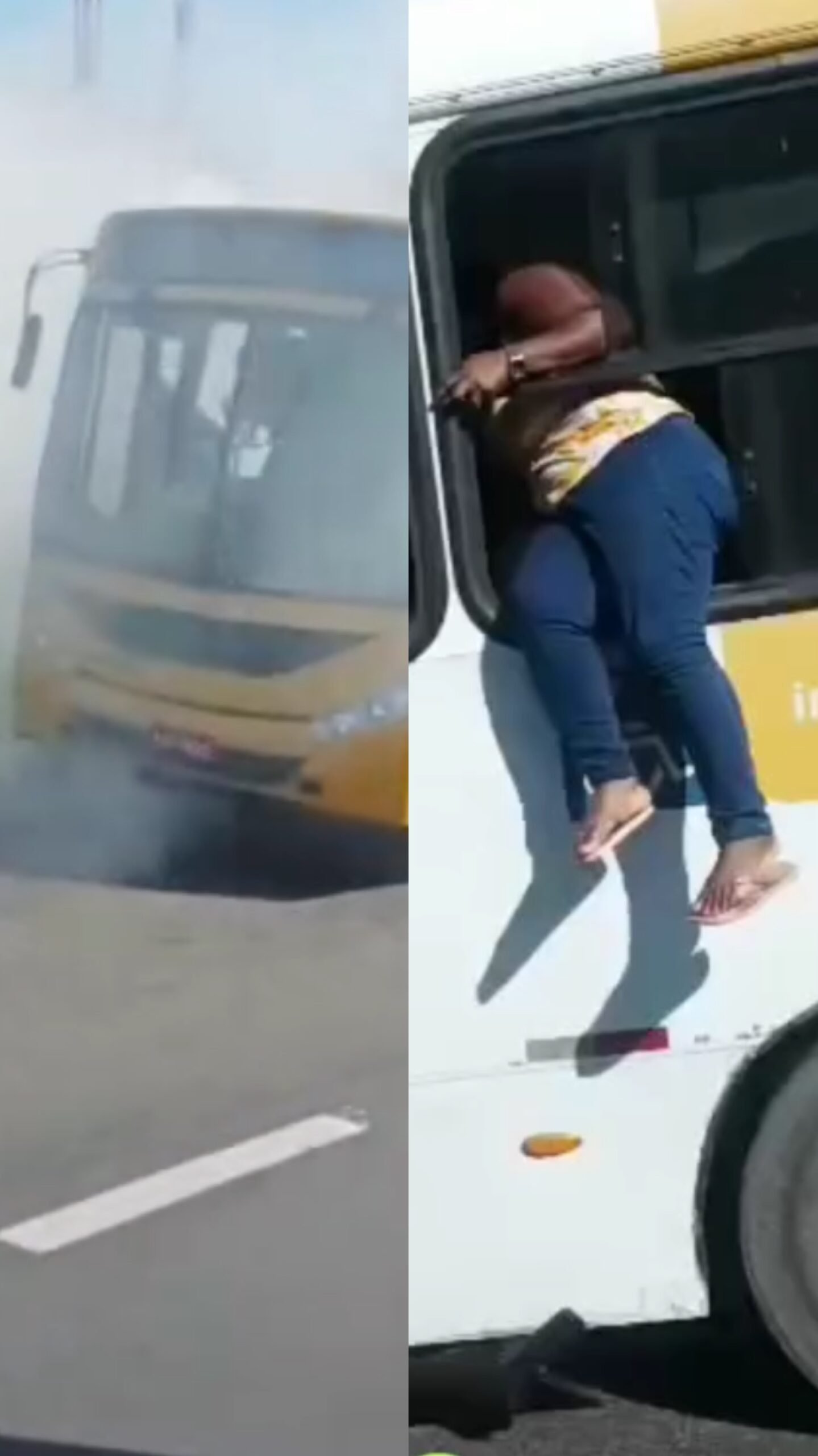 Imagens gravadas por um caminhoneiro que passava pelo local mostram o desespero dentro do coletivo. Para conseguir sair a tempo, algumas pessoas chegaram a pular pelas janelas, com medo de que o fogo se espalhasse rapidamente.
