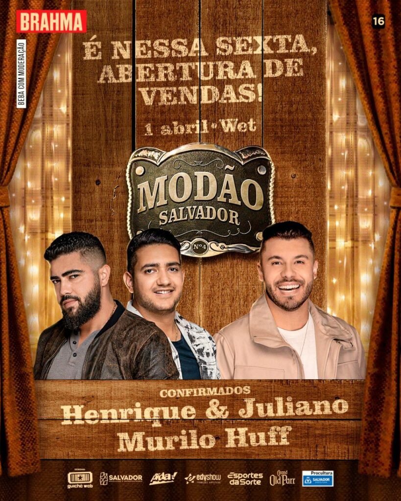 O romantismo vai tomar conta do Wet no dia 1º de abril. A festa Só Modão vai invadir Salvador e trazer com ela, grandes nomes do cenário do sertanejo. Com uma vibe que inspira romance e paquera, a festa já confirmou duas atrações de peso: a dupla Henrique & Juliano e o cantor Murilo Huff. Os setores disponíveis para o público são: Arena Chifre no Asfalto, Área Vip Chuva de Breja e o Backstage Aí Que Mora o Perigo. Os ingressos estarão à venda a partir de sexta-feira, dia 27 nos balcões Pida do Salvador Shopping, Salvador Norte Shopping e Shopping Piedade, além de vendas pelo Bora Tickets – no 2º piso do Shopping da Bahia ou através do site, e no site www.guicheweb.com.br . Se você ama sertanejo e não vê a hora de dançar agarradinho, ao som de grandes nomes do cenário musical, a sua oportunidade é essa! Corra e aproveite os ingressos com preço promocional de primeiro lote.