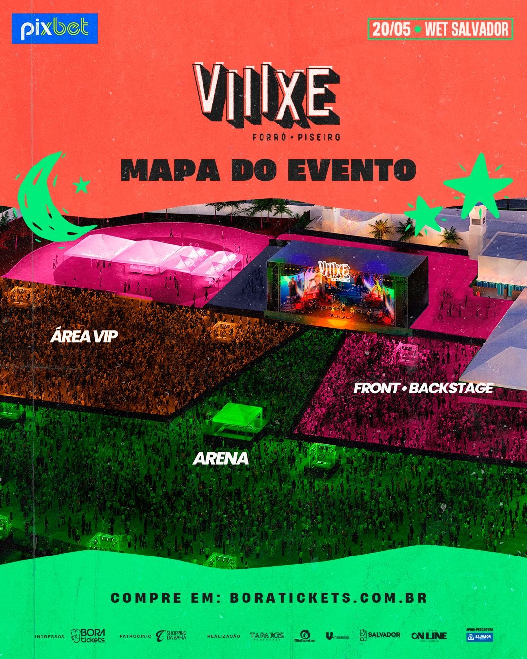 Depois de anunciar a abertura de vendas e divulgar as atrações oficiais, a festa Viiixe! Forró e Piseiro acaba de divulgar o mapa oficial da festa, com os setores disponíveis para compra.